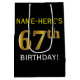 Black, Faux Gold 67th Birthday + Custom Name Medium Gift Bag