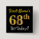 Black, Faux Gold 68th Birthday, With Custom Name Button