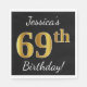 Black, Faux Gold 69th Birthday + Custom Name Paper Napkins