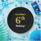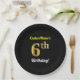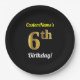 Black, Faux Gold 6th Birthday + Custom Name Paper Plates