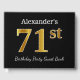 Black, Faux Gold 71st Birthday Party + Custom Name Guest Book