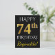 Black, Faux Gold 74th Birthday + Custom Name Postcard