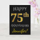 Black, Faux Gold 75th Wedding Anniversary + Name Card