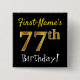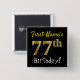 Black, Faux Gold 77th Birthday, With Custom Name Button