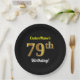 Black, Faux Gold 79th Birthday + Custom Name Paper Plates