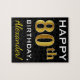 Black, Faux Gold 80th Birthday + Custom Name Jigsaw Puzzle