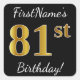 Black, Faux Gold 81st Birthday + Custom Name Square Sticker