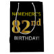 Black, Faux Gold 82nd Birthday + Custom Name Medium Gift Bag
