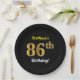 Black, Faux Gold 86th Birthday + Custom Name Paper Plates