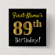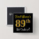 Black, Faux Gold 89th Birthday, With Custom Name Pinback Button
