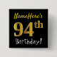 Black, Faux Gold 94th Birthday, With Custom Name Button