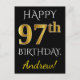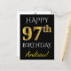 Black, Faux Gold 97th Birthday + Custom Name Postcard