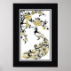 Black, faux gold foil peacock and cherry blossoms poster