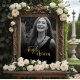 The black faux golden accents add a touch of opulence, creating a luxurious and chic design that pays homage to the departed. The inclusion of a black and white photo adds an elegant and classic touch, further enhancing the poster's visual appeal. The juxtaposition of black, gold, and white creates a harmonious and stylish composition.