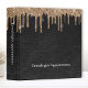 Black Faux Leather Gold Glitter Drip Appointment 3 Ring Binder
