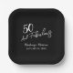 Black Fifty and Fabulous Script Birthday Party Paper Plates.