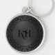 Black ornate floral circle on iridescent black texture background. Luxury monochromatic design.