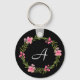 Black Floral Custom Monogram Keychain