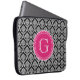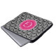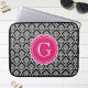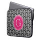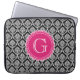 Black Floral Damask Pattern Hot Pink Monogram Laptop Sleeve