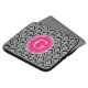 A trendy, modern, girly, floral damask pattern in black and white with a hot pink lace inspired monogram template.