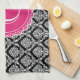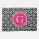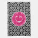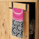 Black Floral Damask Pattern Hot Pink Monogram Towel