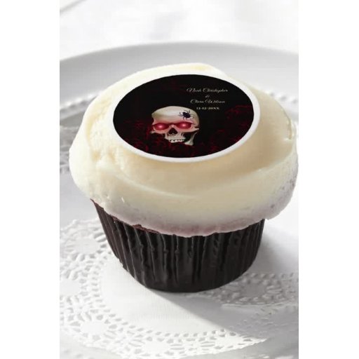 Black floral dark moody gothic skull red roses - scary and spooky Halloween Wedding Place cards.