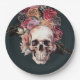 Featuring a gothic skull with pale apricot, black and burgundy flowers on a deep black background. Matches the "Death of her 20s" party collection.