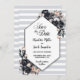 This elegant smoky black watercolor floral geometric striped wedding save-the-date card combines black's timeless beauty with the delicate allure of watercolor florals, creating a truly enchanting marriage notification that sets the perfect tone for your future event. The customizable text allows you to personalize the card with ease.