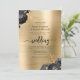 Black Floral Gold Brushed Metal QR Code Wedding Invitation