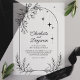 Celebrate your wedding with these black floral star modern arch wedding vellum invitations. Featuring an elegant floral design with shimmering stars and a sleek arch layout, this design combines modern sophistication with romantic charm. The translucent vellum overlay adds a luxurious and ethereal touch, making these invitations perfect for celestial, botanical, or contemporary wedding themes.