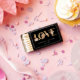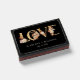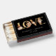 These elegant wedding matchboxes | wedding favors feature hand-painted watercolor burnt orange and terracotta leaves, cream and beige dahlias, and beautiful rust-colored roses on a faux gold foil text, 'love'. Personalize with bride and groom's names and wedding date. Find matching items in the Black Autumn Romance Collection.