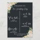 Celebrate your special day with this elegant black floral wedding program and timeline card. Featuring soft ivory roses, lush greenery, and a modern minimalist layout, this design beautifully guides your guests through the day’s events — from ceremony to cocktail hour and dancing. Perfect for couples who love timeless style with a touch of romance. Customize with your names, wedding date, and schedule to make it uniquely yours.