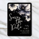 Cute and simple modern black and white flower wedding design. A classic but whimsical look with black, gray and cream colored flowers with gray fonts. With a mix of script typography and modern lettering. Edit all of the text to your own information. You can even change out the background color to anything you want! Script Modern Elegant Floral Black White Wedding Save the Date