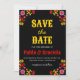 black flowers mexican save the date invitation