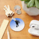 Toy flying robot in blue sky. Original cartoon character. Digital drawing.