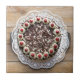 Black Forest cake on rustic wood