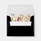 This black formal royal floral self-addressed rsvp envelope is perfect for a modern wedding. The design features watercolor pink, blush, and white elegant flowers with emerald green leaves.