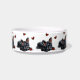 This is a heavy, durable bowl decorated with Tibbies of many colors, the perfect size for hungry/thirsty Tibs. The design is interesting and printing clear.