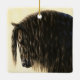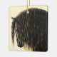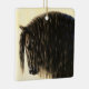 Black Friesian horse with a long wavy mane showing warm yellow highlights from late afternoon sunlight. Realistic artwork created from an original oil painting by equine and wildlife artist Crista S. Forest.