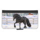 Black Friesian Draft Horse In Snow iPhone Wallet Case