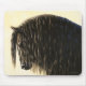 Black Friesian horse with a long wavy mane showing warm yellow highlights from late afternoon sunlight. Realistic artwork created from an original oil painting by equine and wildlife artist Crista S. Forest.