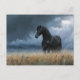 Black Friesian Stallion Dramatic Landscape Postcard