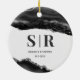 Black Geode Agate Couples Monogrammed Christmas Ceramic Ornament