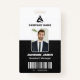 Introducing our sophisticated ID card featuring a striking contrast of white elegance on the top half and bold black geometric patterns on the bottom half. Personalize these vertical badges by adding your employee photo and name, and include two lines of custom text for essential details like employee ID number, role, or location. Your company logo takes pride of place at the top, making a powerful statement. And don't forget the additional custom text field on the back for return information or other important details. Elevate your professional presence with this sleek and customizable ID card design – because your identity deserves to stand out!