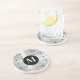 Black geometric pattern silver metallic background coaster