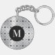 Black geometric pattern silver metallic background keychain