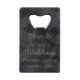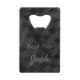 Black Geometric Personalized text Bottle Opener! This makes a great gift to give to the wedding party! This would be a great gift from the groom to those standing up in the wedding! It has a simple yet fun design, on this really unique bottle opener- called the credit card! I added template text on both sides- so feel free to personalize any way you want!