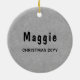 Lightweight, smooth, pure white ornament with nice sheen. Perfect size to be seen from across the room ... and to attract closer inspection! Price was great for ordering enough for the whole family! Clear, bold black design just as requested. Matches the order exactly. Just so nice!