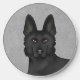 Destei's original cartoon illustration of an adorable black color German Shepherd breed dog's head. The background color is gray with a decorative texture. The texture can be removed and the background color can be changed to any other color, if so wished.