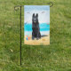 A Black German Shepherd dog sitting on beach is a perfect gift idea for someone who love this dog breed.